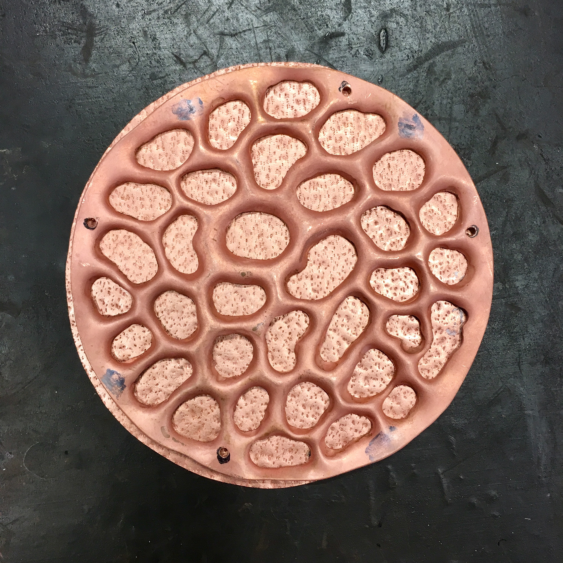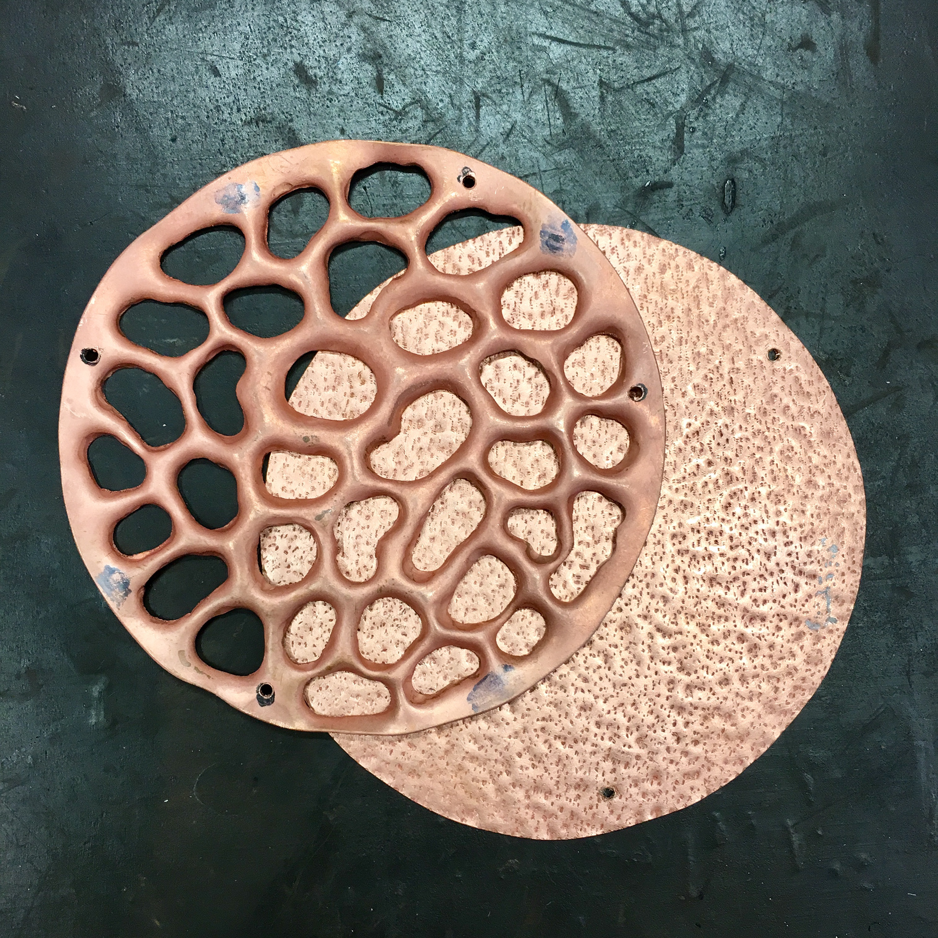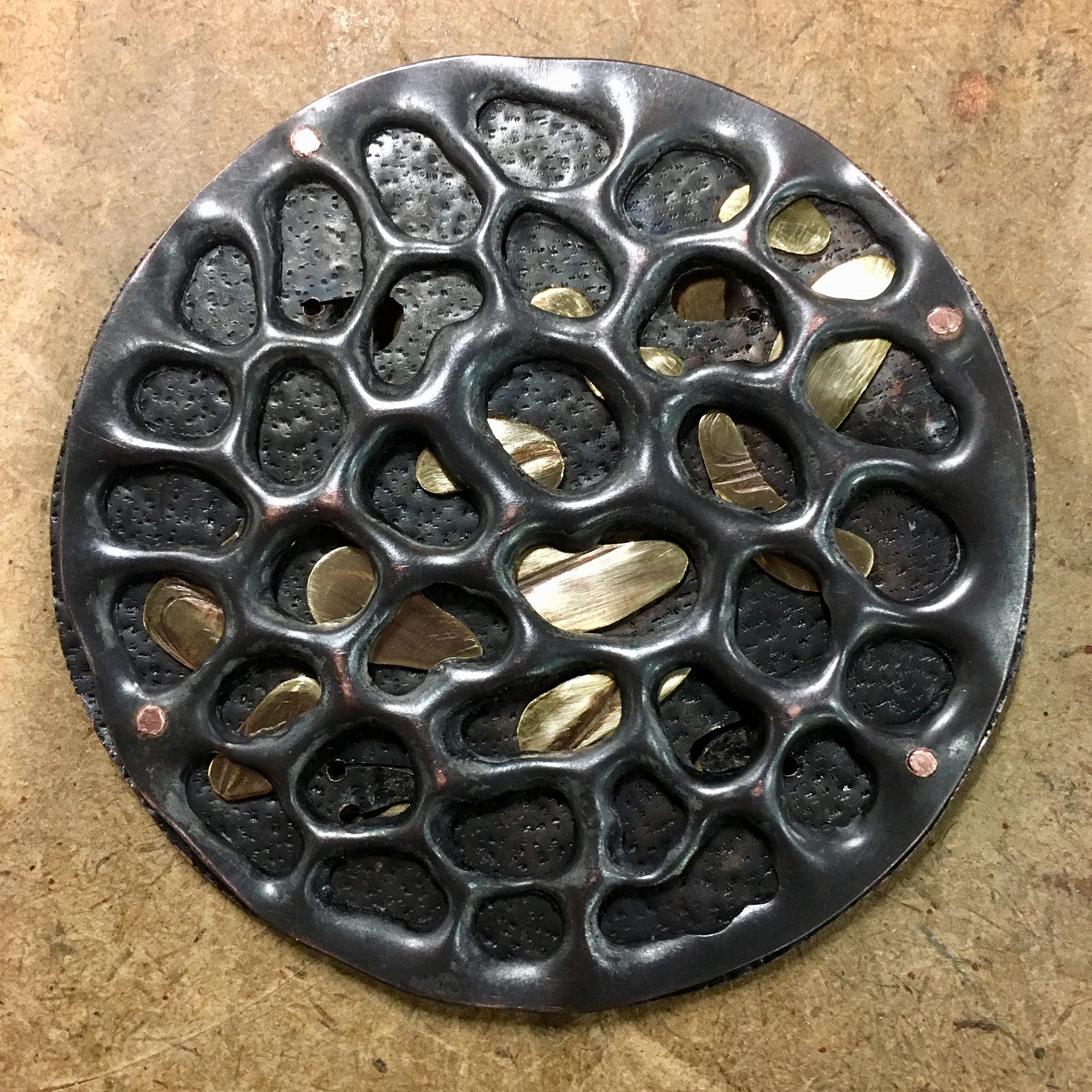Copper broach with black patina